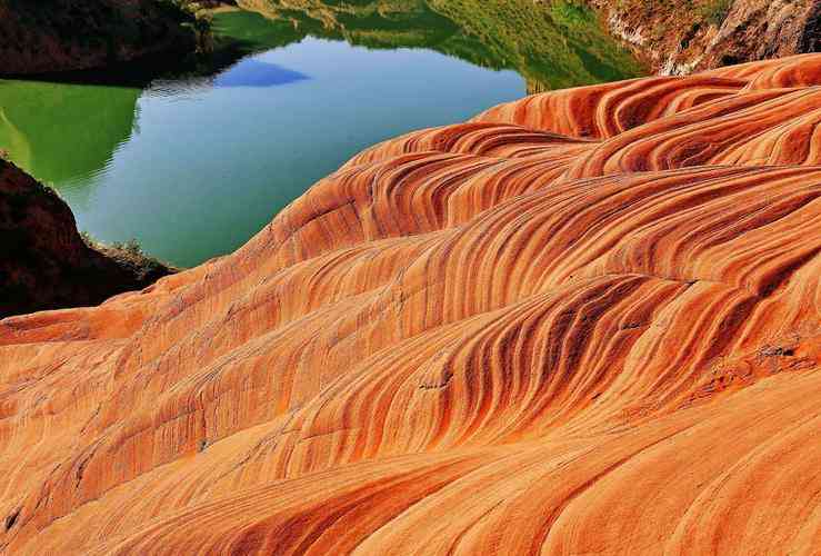 火焰丹霞:火焰丹霞又叫红砂峁,是最早发现龙州丹霞地貌之地,这一区域的红砂岩色泽鲜艳,远看好像火焰山一样。赤壁丹霞:是典型的峡谷景观,峡谷北侧是高约百十米的红岩绝壁,南北两侧是典型的黄土高原地貌,行走其间,两种截然不同的观感给人带来强烈的视觉冲击,对比之下有种奇异的美感。谷底绿草盈盈,流沙河穿梭其间,还有几处天然“回音壁”,其中有一处转弯回音壁,几十米开外聊天,不见其人,而其声近乎身边,甚是绝妙。地心丹霞:地心丹霞为陆上景观,所有景观自上而下直至地心,多为峡谷,风蚀、水蚀在纵横交错的沟壑之间,绘就一幅线条流畅、波澜壮阔的风景画。
