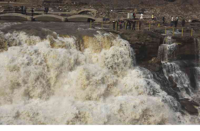 1000立方米/秒的河水,从20多米高的陡崖上倾注而泻,形成“千里黄河一壶收”的气概。