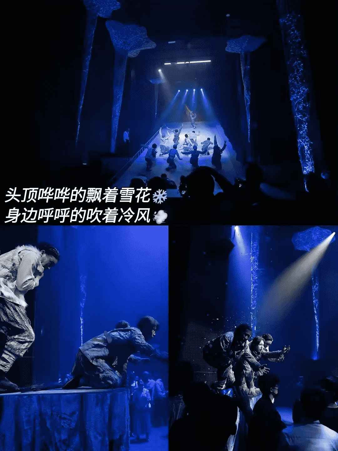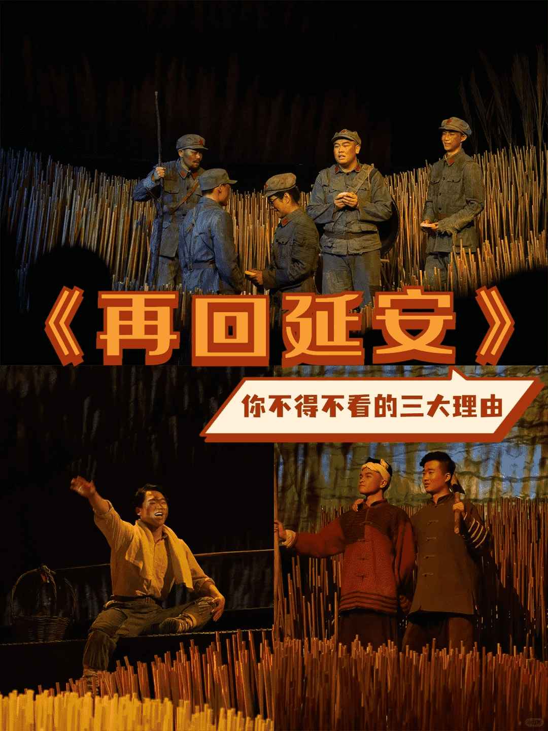 《再回延安》用倒叙的方式将我们拉回到那个爬雪山过草地的红色年代🇨🇳演出利用模拟真实场景,以延安革命历史为背景,通过“一间记忆的博物馆”“一簇燎原的星火”、“一条漫漫的长征路”、“一面不朽的旗枳”利用声光电、真实风雪❄️行进式🎭沉浸其中,重温那段艰苦岁月~