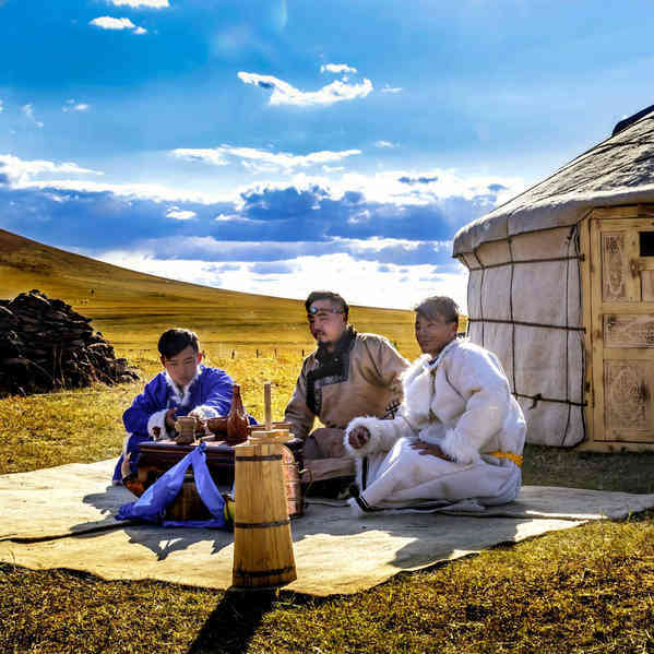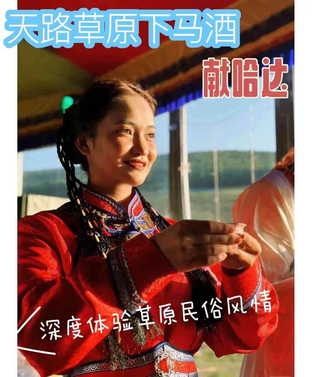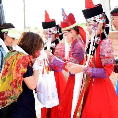 8.【草原迎接】赠送草原高规格【敬献哈达】、【迎宾酒】
