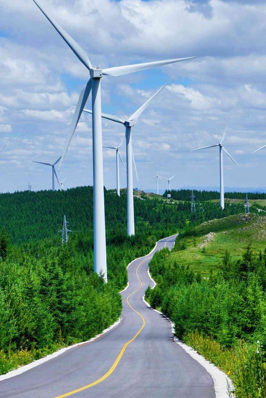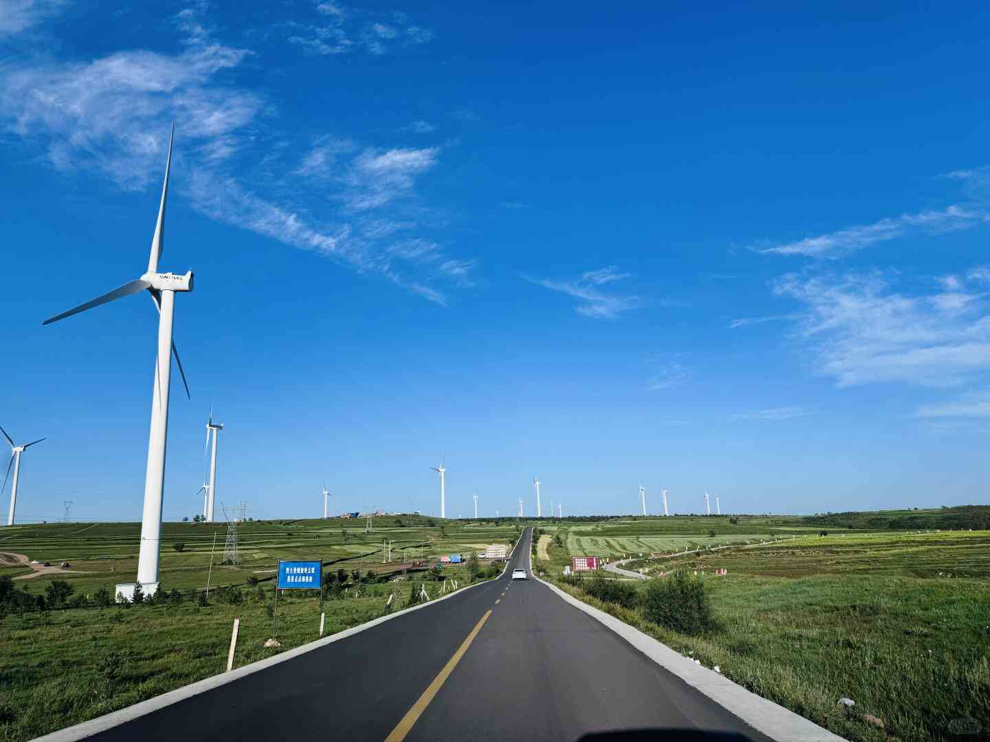 草原天路沿线山高坡陡、沟壑纵深、景观奇骏,风车林立,展开一副百里坝头风景画卷,深色柏油路与黄色线本身就是一条美丽的风景,何须春花烂漫,自揽满怀春风
