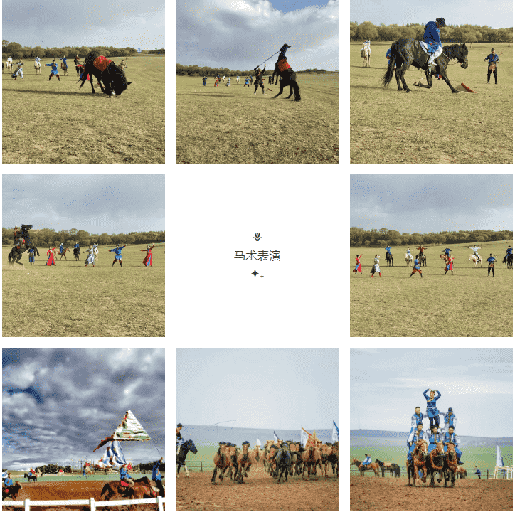 套票包含:哈达,下马酒,萌宠乐园,战车博物馆,小舞台演绎,敖包祭祀,足球场,排球场,民族服饰,射箭,网红桥,七彩滑道,儿童娱乐区,马术演绎(45分钟),民族家访,滑沙,电音节+打铁花+篝火晚会等。