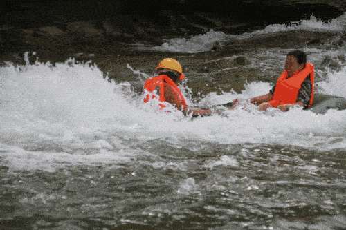 4、漂流过程中务必保持船的平衡以免被激流冲翻;