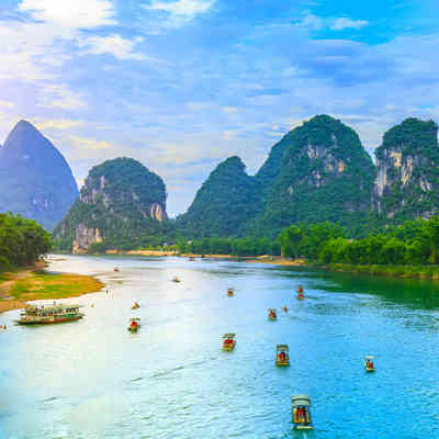 早餐后赴阳朔(车程约1.5小时),赴漓江最美古镇,拥有1400多年历史的兴坪古镇,后搭乘游船游览5A【漓江风光--兴坪佳境】,兴坪漓江段是漓江最精华,风景最美的一段。两岸群峰竞秀,碧水萦回,欣赏风景如画的兴坪佳境、20元人民币背景图案、黄布倒影等漓江绝色景观,亲身感受"人在天上走,船在画中游"的神奇仙境。