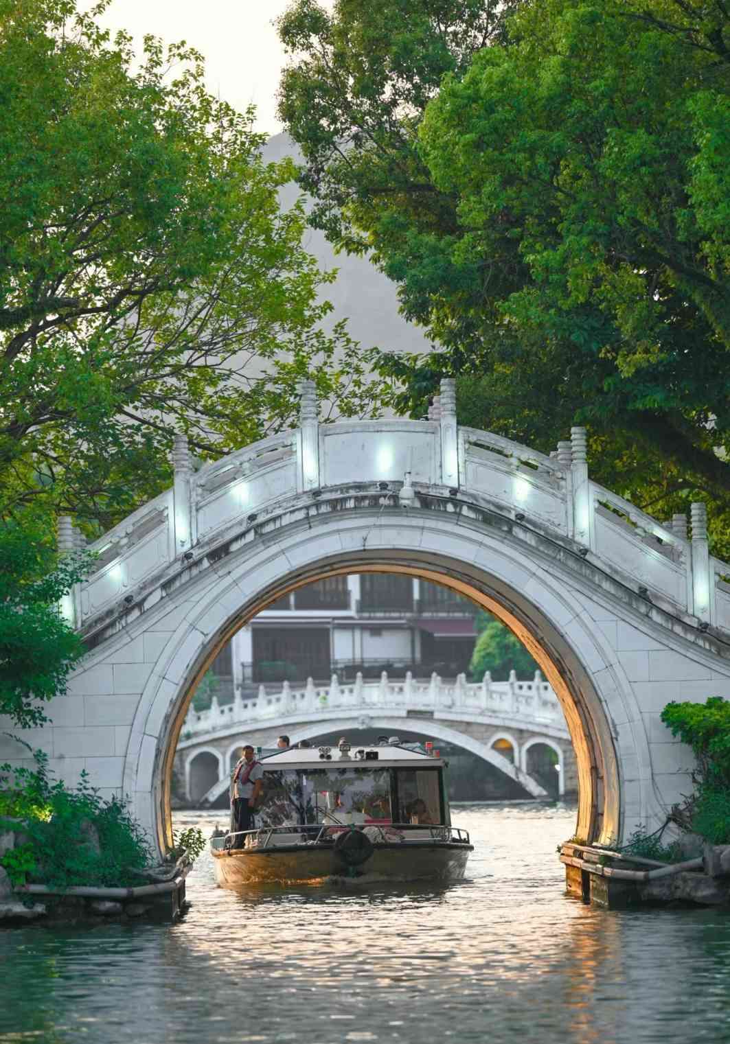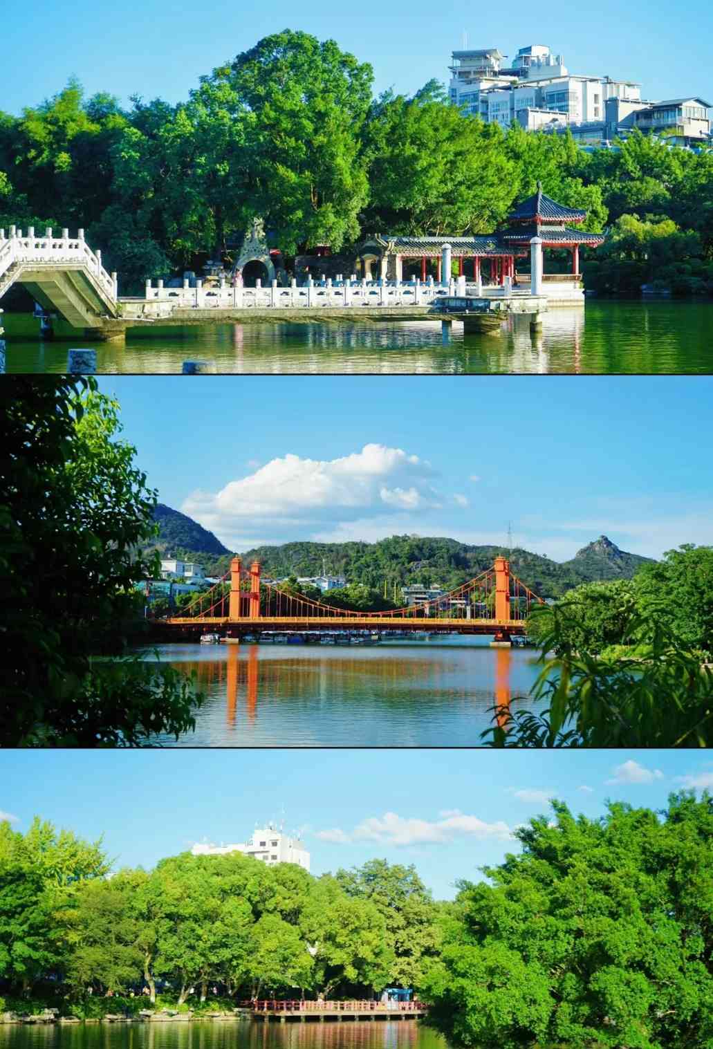 后游览【春晚网红打卡地榕杉湖景区】 ,公园汇集风景园林和丰厚的历史文化于一体 ,属开放式中央公园—— :湖心岛建筑、玻璃桥、 古南门、系舟亭观景、诗文碑刻等胜景。观日月双塔 ,体验城在景中 ,景在城中”的山水格局。此处是留影的最佳胜地。