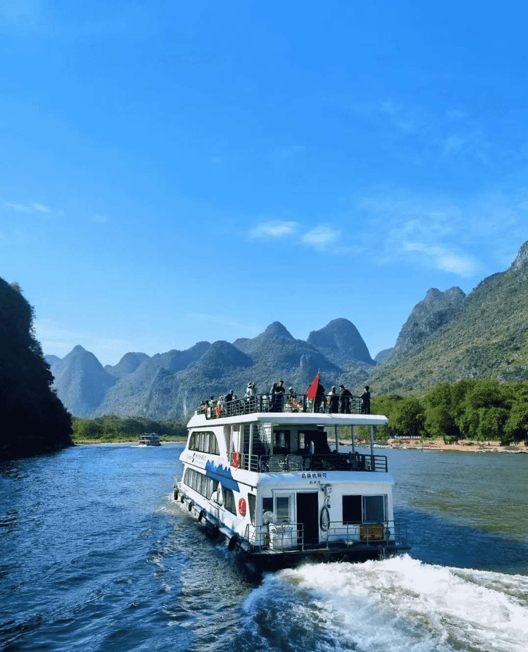 ★★温馨提示:在船顶观光,由于船在江中行驶,容易摇晃,拿着相机或者手机在船的栏杆处拍照的游客,特别要小心,船体摇晃摄影器材很容易掉入江中。