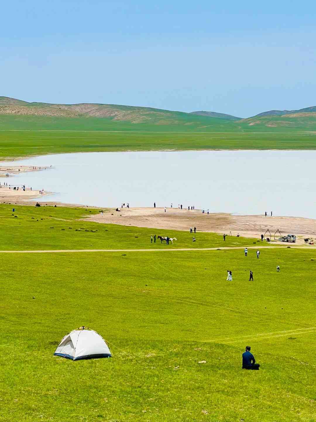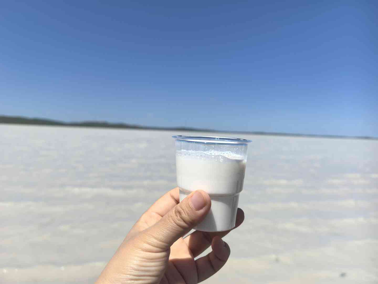 早餐后前往牛奶湖蒙古语称 “查干淖尔”,意为 “白色的湖”。其湖水呈奶白色,是因作为天然碱水湖,湖底经长期地质变迁沉积大量碳酸钙等矿物质,微细颗粒悬浮水中,随湖水流动被搅起,使湖面常年呈现牛奶般的温润色泽。晴空下湖面如奶油丝滑,倒映蓝天白云;微风拂过时,奶白色涟漪层层晕染。每年 6 月下旬至 8 月下旬,受雨季和动物活动影响,“牛奶湖” 景观更为显著。