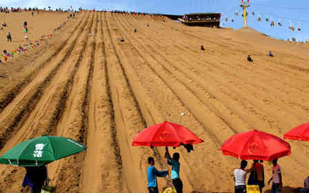 后换乘体验前往浑善达克沙漠有刺激的项目等着大家,那就是穿越沙漠,深入草原,穿越开始乘坐四驱越野车,我们横穿草原沙地之旅;途径野鸭湖,成千上百只野鸭在湖水里嬉戏,美不胜收,大家可以在湖边拍照留念,成千上百只野鸭在湖水里嬉戏,美不胜收,大家可以在湖边拍照留念,接着往前走可以看到成群的牛羊,牧民挥动这马鞭,唱着蒙古长调在广阔无垠的草原上驰聘,大家也可以跟牛羊群合照,浑善达克最大的沙丘,在这里您可以不限次数的【滑沙】车穿行在高低不平的沙地之间,感觉无比刺激。万亩樟子松大道林,从林中才穿过,感受绿的气息。接下来尽收眼底的是玛瑙山,可以爬上山顶可以俯瞰整个草原的美景,观看九曲十八弯的河流,一望无际的草原,满布草原的花海,牛羊群尽收眼底。
